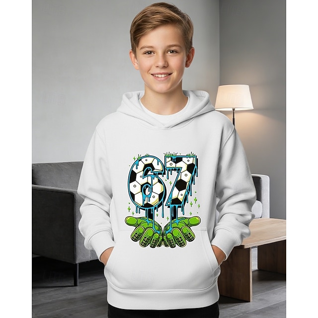 Мальчики 3D Графика Футбол Забавный сленг 67 Толстовка Pullover Длинный рукав 3D печать Весна Осень Спорт Мода Уличный стиль Дети 4-12 лет Капюшон на открытом воздухе Повседневные Стандартный #14346825