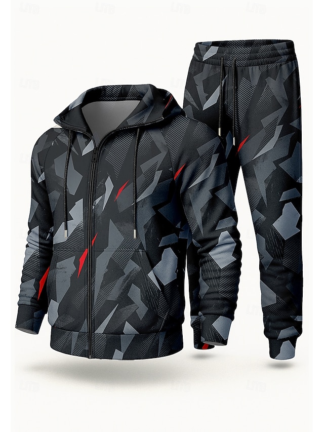 Пол:Муж.,Категория:Спортивный костюм из двух частей,Спортивная одежда,Комплекты спортивных костюмов,Спортивный костюм,Комплект спортивной одежды,Толстовка,Тип:Наборы одежды,Вид деятельности:Путешествия,Назначение,Бег,На открытом воздухе,Назначение:Тренировка,Повседневные,Спорт,Одежда для спорта и отдыха,Для спортивного зала,Дом,Сезон:Зима,Осень,Тип посадки:Стандартный,Эластичность ткани:Эластичная,Функция:Легкость,Мода,Ткань:Спандекс,Полиэстер,Длина рукава:Длинный рукав,Крой талии:Нормальная,Дизайн:Застегнуться,Цветовые блоки,Кулиска,Карман,Тип выреза:Вырез под горло,Капюшон,Узор:Геометрия,В комплекте:Толстовка,Брюки,