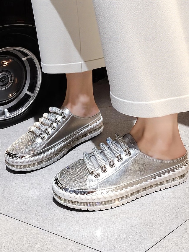 женские серебристые металлические кроссовки-слипоны с блестками, повседневная обувь на платформе для повседневной носки и свиданий #14510518