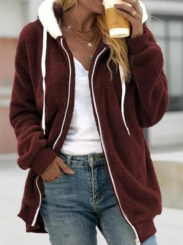 женская повседневная куртка с карманами однотонная теплая стильная свободная верхняя одежда с длинным рукавом осенняя бордовая s #14554874