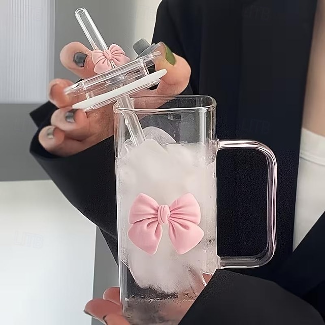 400 мл 14 унций стеклянная кружка с трубочкой и ручкой термостойкий прозрачный розовый дизайн с бантом многоразовая бутылка для воды для дома офиса поездок подарков ко Дню святого Валентина и#14731499