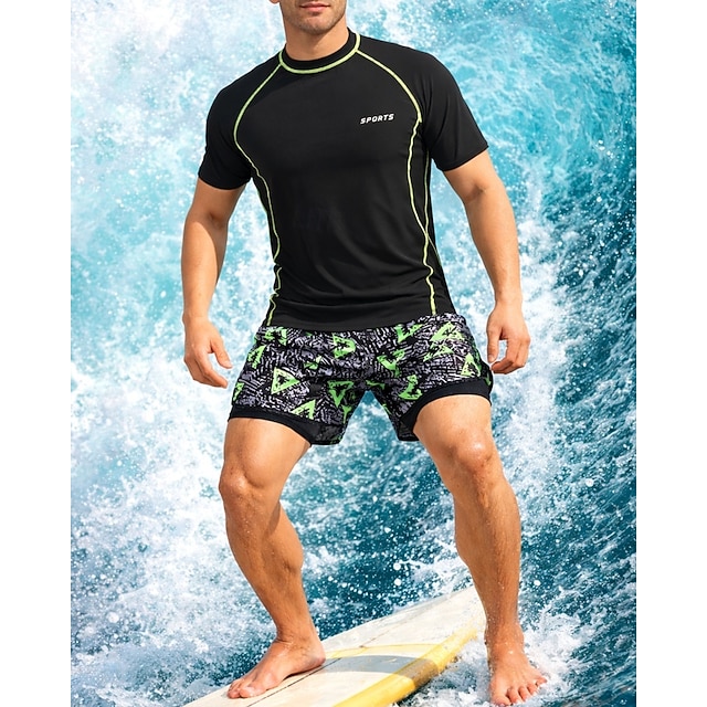 Муж. Стандарт Рашгард из 2 частей Рубашка для серфинга Купальник-шорты Графика Кулиска С компрессионным вкладышем УФ-защита от солнца Быстровысыхающий Дышащий Без рукавов С короткими рукавами#14891973
