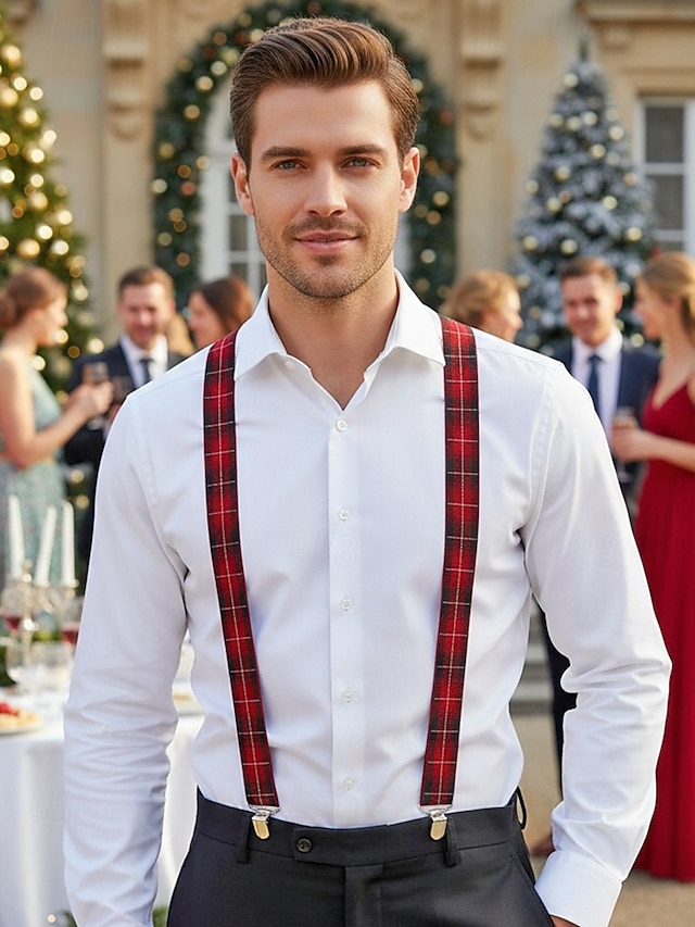 мужские рождественские подтяжки – эластичная ткань с разнообразными узорами, регулируемые и стильные, идеально подходят для праздничных вечеринок и официальных мероприятий#14899742