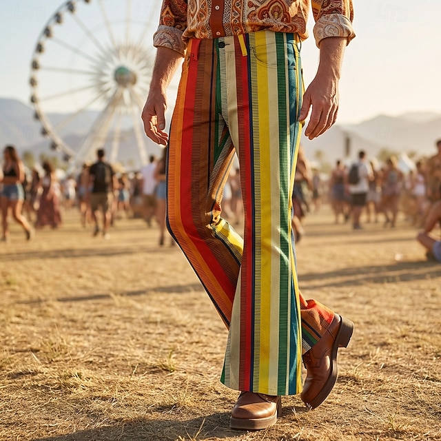 Ретро Богемный В стиле 1970-х Брюки Расклешенные брюки Хиппи Диско Завышенная Зигзаг Маскарадный костюм Муж. Хэллоуин Карнавал музыкальный фестиваль Ретро-вечеринка Взрослые Брюки#14906805