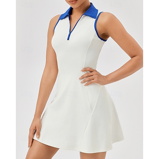 Жен. Однотонный Теннисное платье Спортивное платье Без рукавов Застегнуться Влагоотводящие Дышащий Теннис Бег Фитнес Платья Черный Синий Лиловый Теннисная одежда #15145753