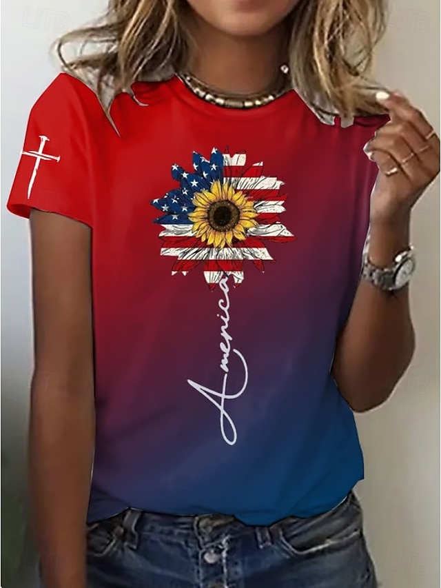 Патриотическая майка ко Дню независимости Женская футболка графический флаг винтажный стильная классическая с коротким рукавом круглый вырез обычная футболка повседневная выходные печать синий #15390080