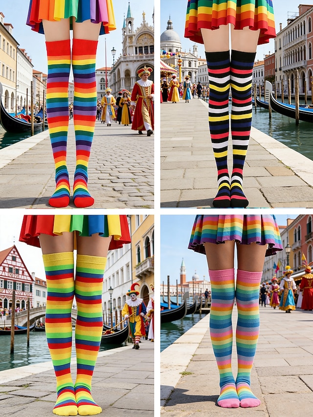 Женские разноцветные чулки до колена на Марди Гра в комплекте из 4 штук — растяжимые полосатые карнавальные чулки для женщин яркий стиль для карнавальных и праздничных нарядов#15477114