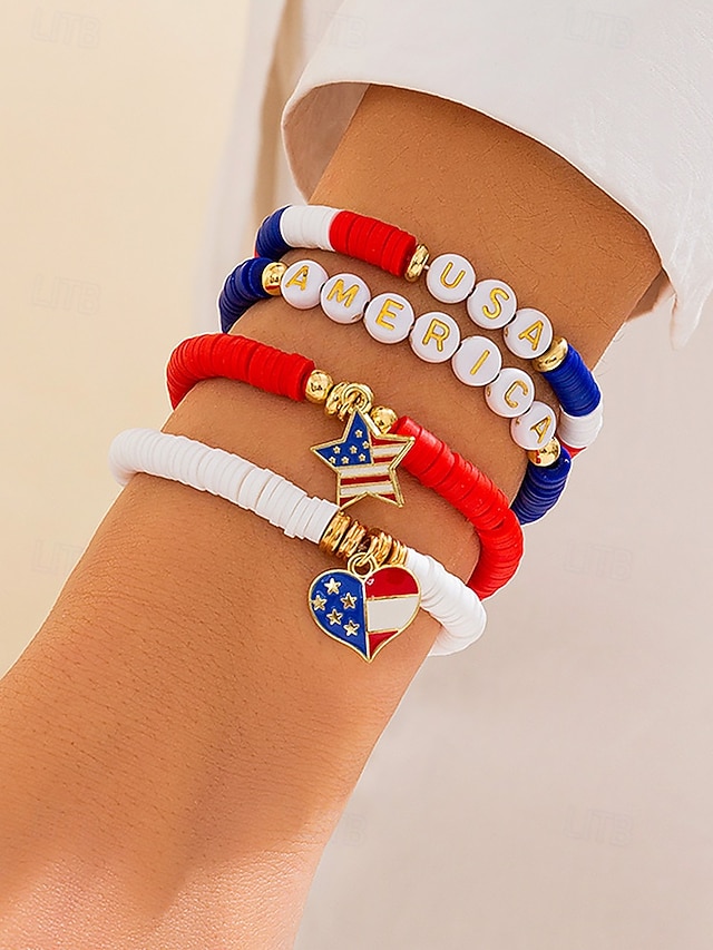 Пол:Жен.,Материал:Сплав,Акрил,Стиль:На каждый день,модный,День независимости,Назначение:День независимости,Тип украшения:Браслет,Набор украшений,Набор браслетов,
