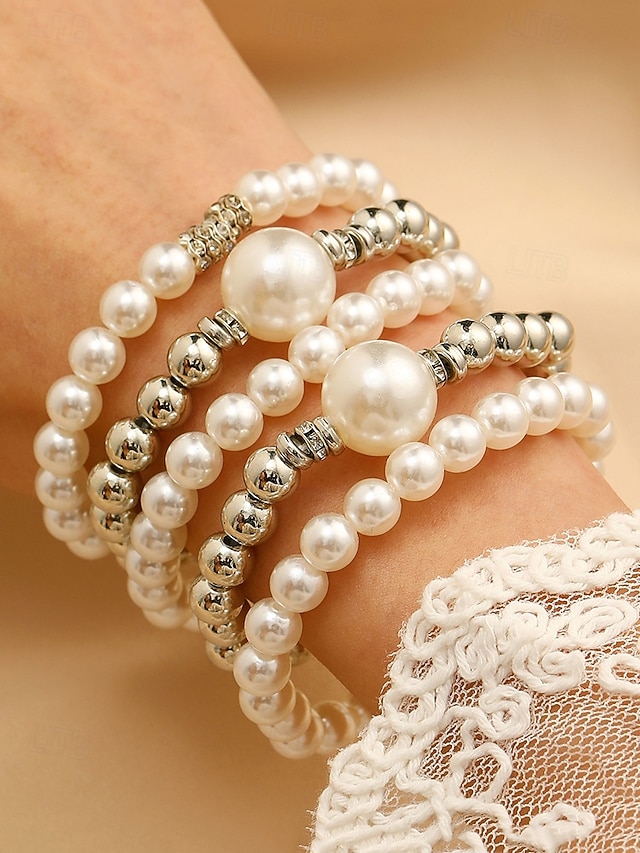 Женский набор браслетов из искусственного жемчуга, элегантный дизайн из серебра и жемчуга, разнообразные варианты для свадеб, вечеринок, торжественных мероприятий и в качестве свадебного аксессуара.#15874461