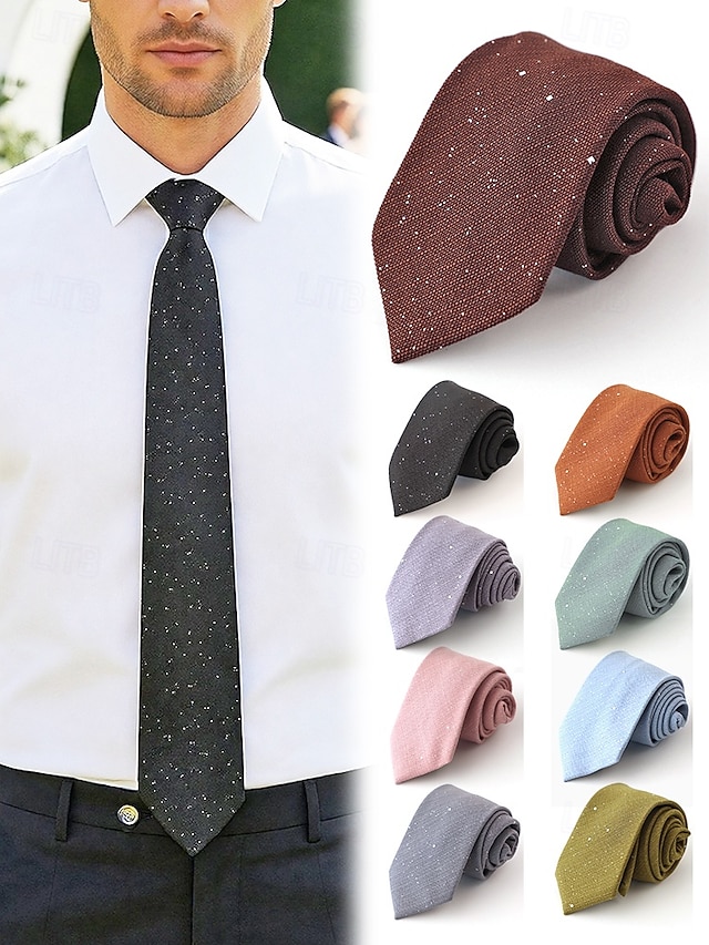 Мужской галстук из полиэстера с эффектом мерцания – в нескольких цветах, элегантный для свадеб и ужинов, однотонный с легким мерцающим эффектом. #15992691
