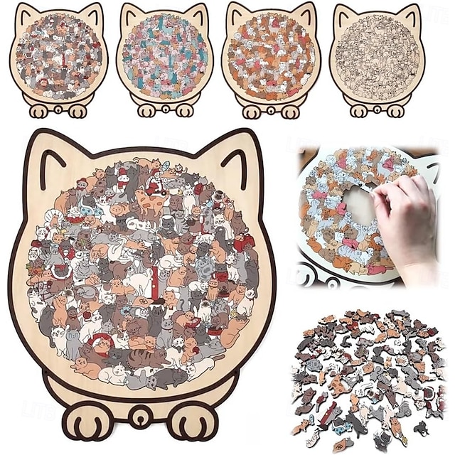 Деревянный пазл в форме кошки из 135 деталей, состоящий из пазлов, макарон, дерева и цветов Моранди, для взрослых, милый деревянный пазл с контуром кошки, креативный подарок-пазл, украшение для#15993621
