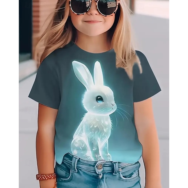 Девочки 3D Кролик Футболка С короткими рукавами Лето Весна Мода Классический Дети 4-12 лет Вырез под горло на открытом воздухе Повседневные Стандартный #16246060