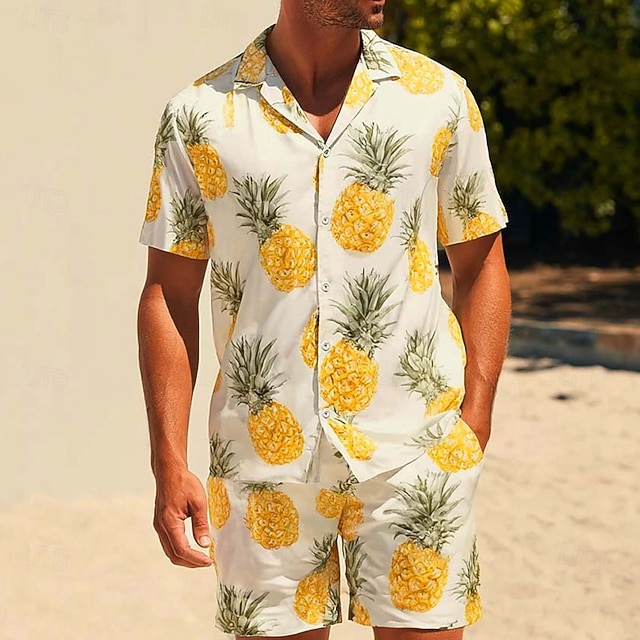 Муж. Фрукты 2шт Комплекты рубашек Рубашка С короткими рукавами Короткие штаны кубинский воротник Отпуск Повседневные Для вечеринок 3D печать Лето Желтый #16569596