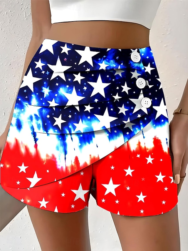 Жен. Чино Шорты Отпуск Винтаж Этнический стиль Короткие ЗавышеннаяPantsДень независимости Америки Графика Флаг Плиссировка Многослойный Комфорт Неэластичная Повседневные на открытом воздухе Отпуск #16702613