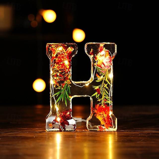 1 шт. светодиодный ночник 11,5 см с 26 буквами, теплый свет в виде сухого цветка, настольное украшение, декоративный светильник, светильник для украшения Рождества, Хэллоуина, свадьбы, дня рождения, вечеринки #16900386