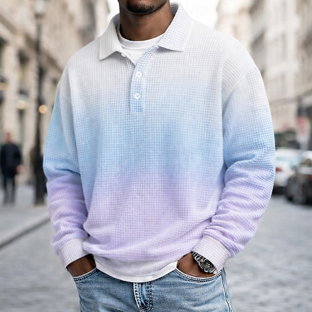 Муж. Градиентная рампа Рубашки-поло из вафельной ткани Длинный рукав Футболки поло Лацкан Спортивная одежда На каждый день Школа Одежда для спорта и отдыха На каждый день 3D печать Весна Осень Зима #16942232