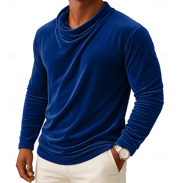 Муж. Футболка Длинный рукав Вырез под горло Осень Наступила зима Все сезоны Сплошной цвет Традиционный / винтаж На каждый день Рюши Повседневные Дом на открытом воздухе Винный Черный Белый #16964426