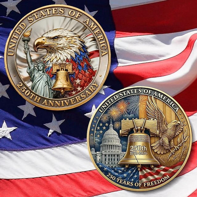 Монета с орлом и свободой в честь 250-летия Америки – Патриотическая коллекционная монета дизайн с золотым колоколом свободы и флагом прочный металл для выставки Семиквинтессенциаль#17130382
