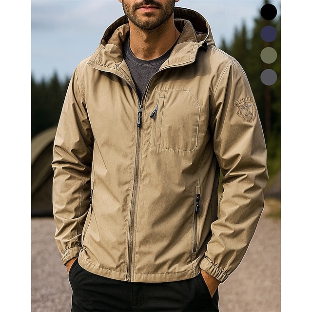 Пол:Муж.,Категория:Спортивная куртка,Куртка для активного отдыха,Куртка для туризма и прогулок,Тип:Жакет,Вид деятельности:Гольф,Теннис,Бег,Назначение:На каждый день,спорт,Сезон:Осень,Весна,Функция:С защитой от ветра,Дышащий,Легкость,Быстровысыхающий,Водонепроницаемость,Ткань:Полиэстер,Дизайн:Полный почтовый индекс,Тип выреза:Капюшон,Узор:Сплошной цвет,