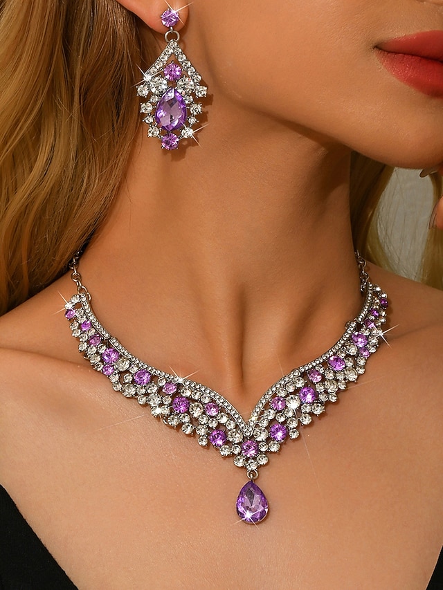 Женский комплект из фиолетового ожерелья и серег со стразами — блестящие винтажные украшения для вечеринок в стиле Гэтсби, бальных танцев и официальных вечеров#17862637