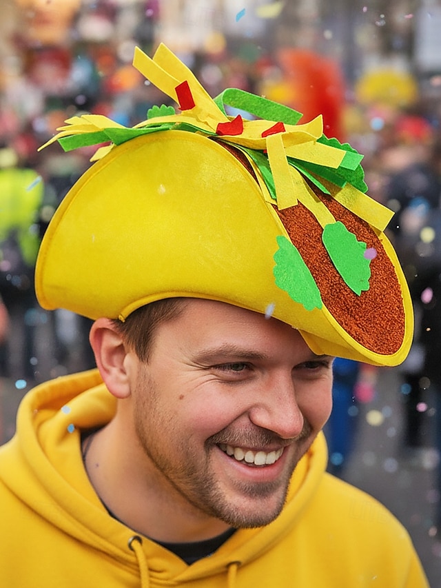Мужские шляпы Mardi Gras из полиэстера с тематикой еды – забавные дизайны с картошкой фри и тако для карнавала и маскарадных вечеринок#17909834