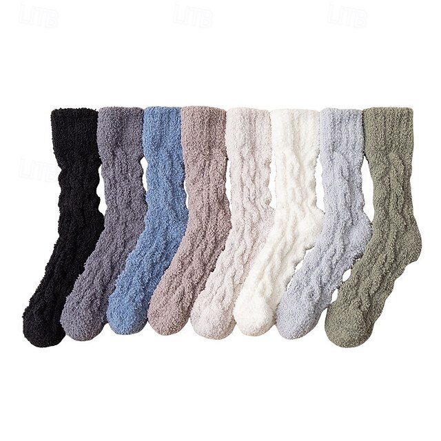 женские носки, не линяют, плотные зимние носки-тапочки из однотонного кораллового флиса, теплые домашние носки с силиконовой нескользящей подошвой#17992742