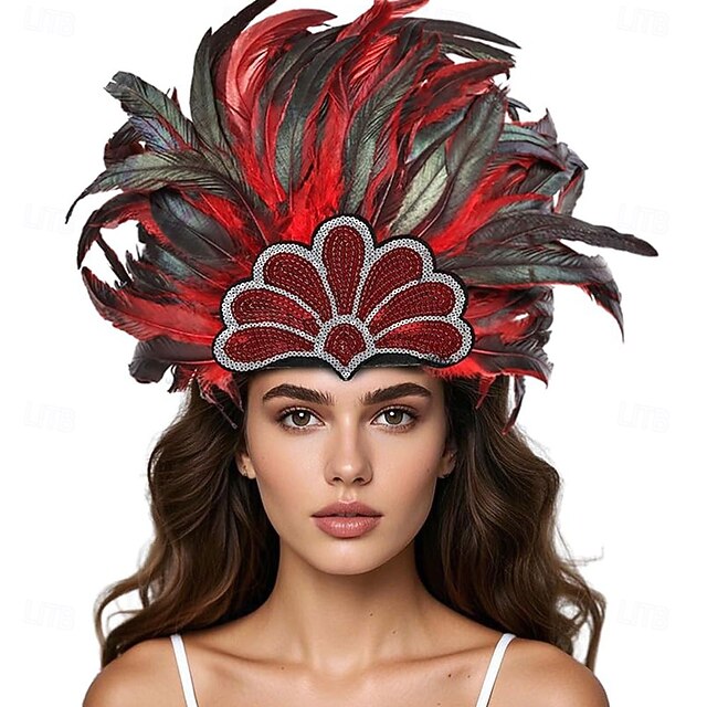 Карнавальная ночь 2026. Рио Карнавальная самба Аксессуары Красный и черный головной убор с перьями для женщин на фестивале Марди Гра - танцевальный аксессуар для фестиваля Бразилия#18263511
