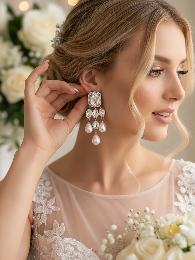 женские серьги-подвески из кристаллов и жемчуга — гламурные эффектные серьги-подвески со стразами для вечеринок, свадеб или вечерних мероприятий#18275237