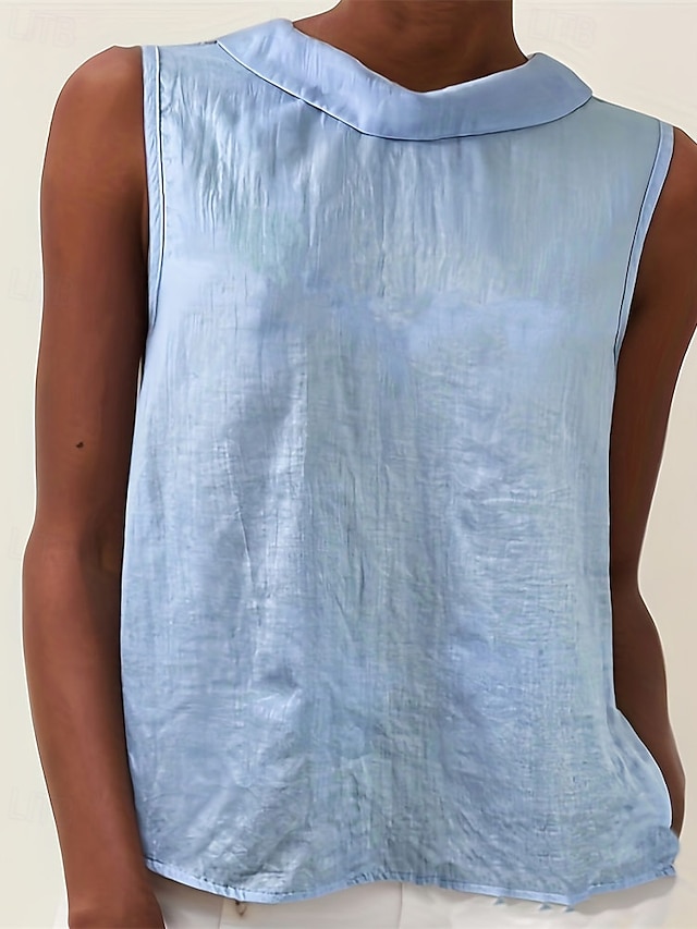 Жен. Летние вершины Блуза Нарядные Топы Искусственный хлопок и лен Рюши Пэчворк Пуговицы Полотняное плетение Элегантный стиль Винтаж Дамы Без рукавов Вырез-хомут Обычные топы #18368054