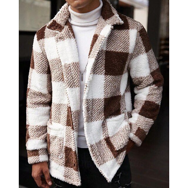 Муж. Зимнее пальто Куртка из искусственной замши Флисовая жилетка Повседневная куртка на открытом воздухе Повседневные Сохраняет тепло Карман Осень Зима В клетку Винтаж Уличный стиль Лацкан Длинная