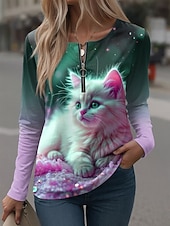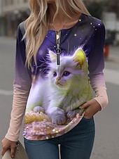 Жен. Футболка Графика Животное Винтаж На каждый день Длинный рукав Вырез под горло Зубчатая шея Обычные топы Повседневные выходные Молния С принтом Розовый Лиловый Зеленый Весна Осень Зима #19052528