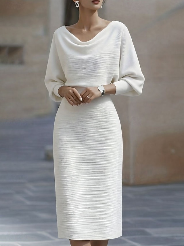 Жен. Платье средней длины Платье-футляр Полуформальные платья Офис Стандартный Полотняное плетение Рукав 3/4 Вырез лодочкой Черный Белый Темно синий Серый Лето Весна Осень #19074201