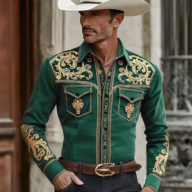 Муж. Огурцы Цветочный принт Цветы Рубашка Западная рубашка Ковбойская рубашка Длинный рукав Винтаж Ретро Повседневные на открытом воздухе Рабочая одежда Весна Осень Отложной #19241205