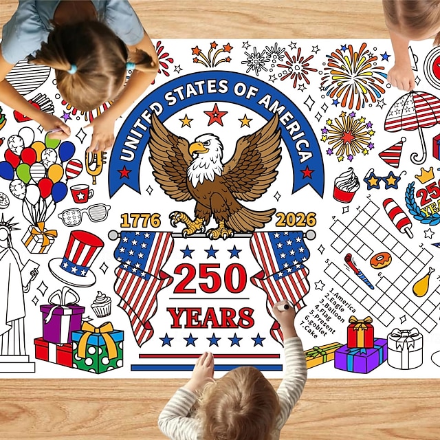 Раскраска к 250-летию США, размер 31*72 дюйма, тематическая раскраска к 250-летию для класса, дня рождения, вечеринки в честь Дня независимости Америки, универсальное использование в качестве настенного декора или скатерти. #19357128