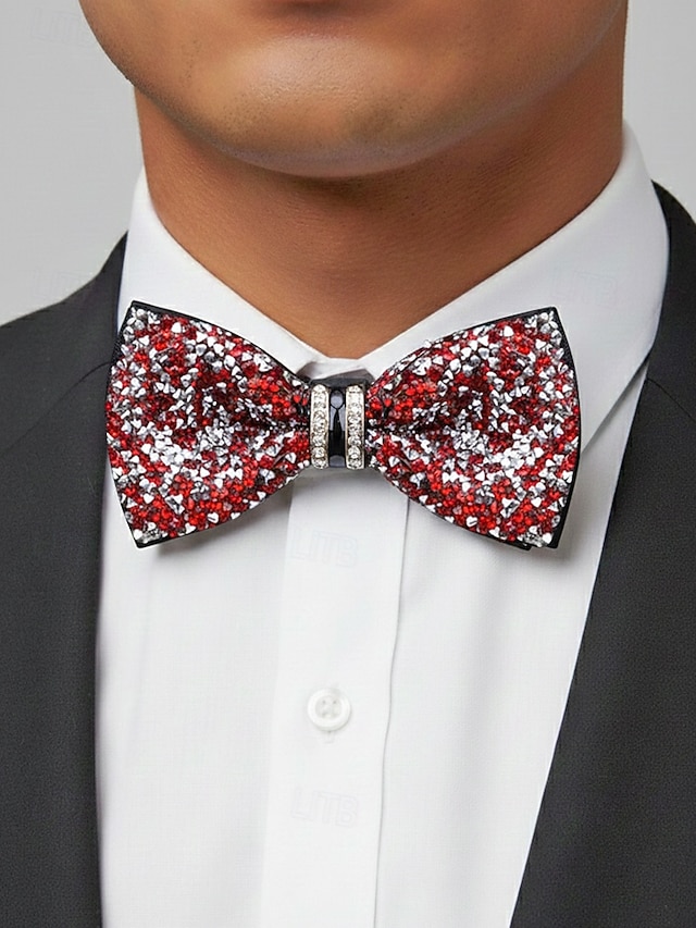 Мужской галстук-бабочка из полиэстера с блестками и кристаллами, доступен в нескольких цветах, идеально подходит для свадеб и вечерних мероприятий.#19572352