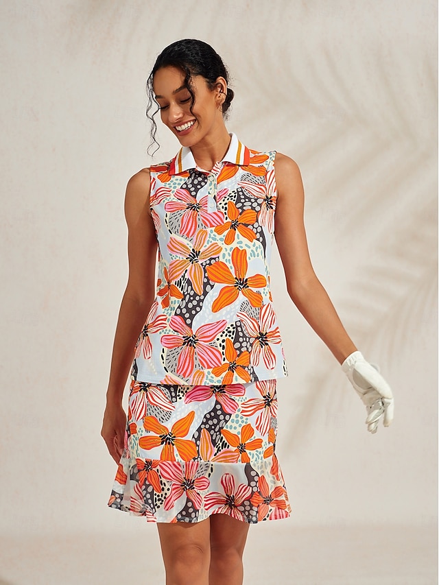Жен. Футболка-поло Желтый + голубой Серебро + оранжевый Без рукавов Женская одежда для гольфа Одежда Одежда Одежда #19686303