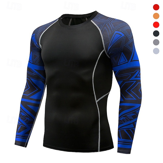 [Ткань] Изготовленная из высококачественного полиэстра и спандекса, эта компрессионная футболка для мужчин обеспечивает легкость и воздухопроницаемость, а также обладает исключительными влагоотводящими свойствами, которые позволяют оставаться сухими во время интенсивных тренировок. Микроэластичность материала обеспечивает плотную посадку, улучшая поддержку мышц и свободу движений во время спортивных активностей. [Посадка] Сшитая с учетом анатомии, рубашка с длинным рукавом предлагает обтекаемый силуэт, который идеально подходит для многослойного ношения или носки в одиночку. Классный круглый вырез добавляет немного классического спортивного стиля, тогда как усиленные швы и соединения с плоским замком минимизируют натирание и раздражение, способствуя комфорту на протяжении всей тренировки. [Дизайнерские особенности] Футболка имеет элегантный черный основной цвет с рукавами, украшенными привлекающим внимание синим геометрическим узором, добавляя современный и динамичный шарм. Этот отличительный дизайн одновременно универсален и стильный, что делает его подходящим для различных спортивных мероприятий. [Ситуации] Идеальна для различных случаев, таких как повседневный стиль, спорт-шик или активные мероприятия на свежем воздухе, эта компрессионная футболка идеально подходит для тренировок в спортзале, бега, джоггинга или любого спорта, который требует производительности и комфорта. Ее быстро сохнущие и воздухопроницаемые характеристики делают ее отличным выбором для поддержания комфорта в любых условиях. [Варианты размеров] Доступна в различных размерах от S до XXL, что обеспечивает подходящую посадку для разных типов телосложения. Эта футболка предлагает гибкость и комфорт для улучшенного опыта активной одежды.