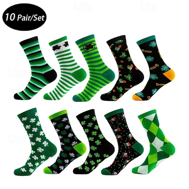 Муж. 6 пар Носки Носки для бега Повседневные носки Яблочно-зеленый Зеленый + белый Цвет Полоски Клетчатый Clover на открытом воздухе Отпуск На каждый день Средней плотности Все сезоны#19809421