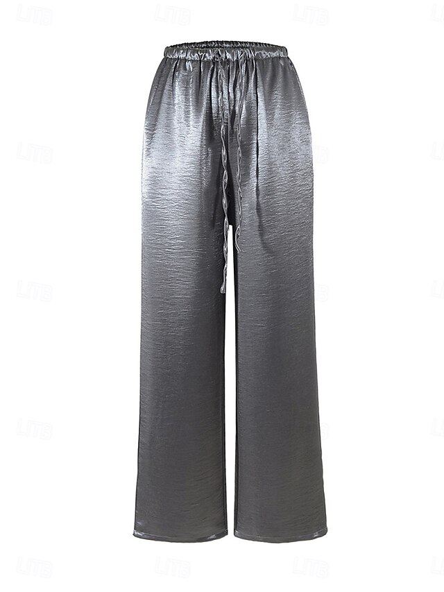 Жен. Широкие Чино Брюки Прямой силуэт Элегантный стиль Отпуск Винтаж Полная длина Нормальная Полотняное плетение Пэчворк Карман Эластичный пояс удобный Дышащий Неэластичная #19911104