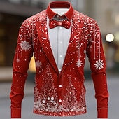 Новогодняя тематика Муж. Новогодние костюмы Рубашка-смокинг с принтом в виде галстука Рубашка Кнопка рубашка Длинный рукав Веселая на открытом воздухе Праздники Весна Осень Отложной 3D #16503848