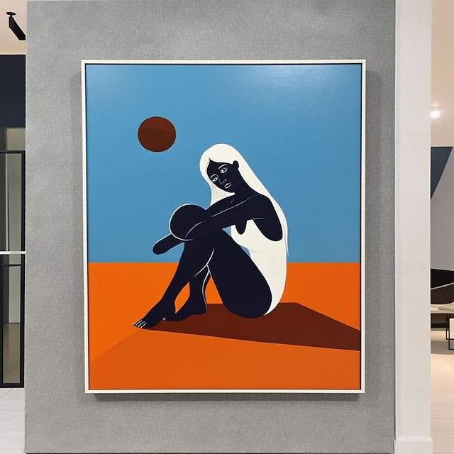 большая абстрактная картина, оригинальная минималистичная картина, абстрактное искусство, картина с изображением чернокожих женщин, синяя абстрактная картина, большая картина с диваном на стену.#11714406