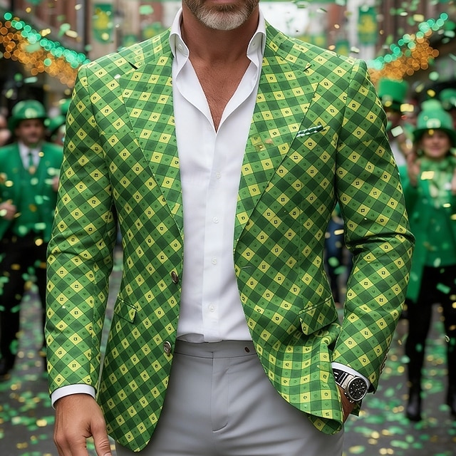 Пол:Муж.,Стиль верхней одежды:Блейзер,Назначение:Бизнес,Офис,Для вечеринок,Официальные,Сезон:Зима,Осень,Ткань:Хлопок,Планка:Однобортный крой,Стиль:День Св.Патрика,Мода,Длина верхней одежды:Обычная,Узор:Геометрия,Трилистник,Дизайн:Рисунок,Тип выреза:Плоский воротник,Правила ухода:Влажная чистка,