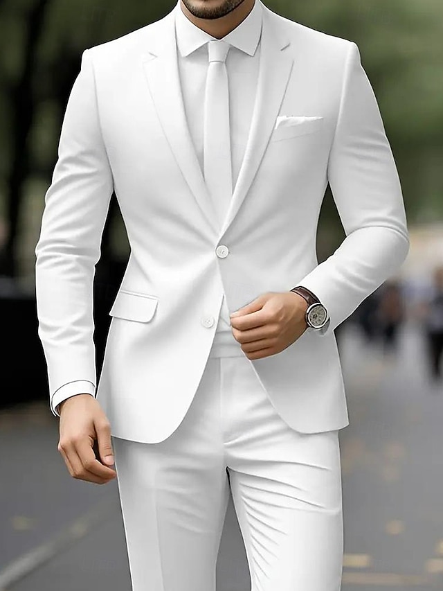 Мужской Смокинги Костюмы для вечеринок Повседневные Свадьба Белый Костюм Лацкан с тупым углом Формальная Однотонный Приталенный крой Набор из 2 предметов Однобортный с 3 пуговицами#15564922