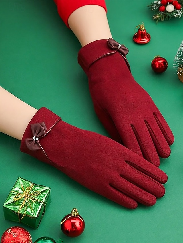 Женские рождественские перчатки для сенсорных экранов – теплый полиэстеровый материал с милым бантом, идеально подходят для праздничных вечеринок и зимнего ношения #17448328