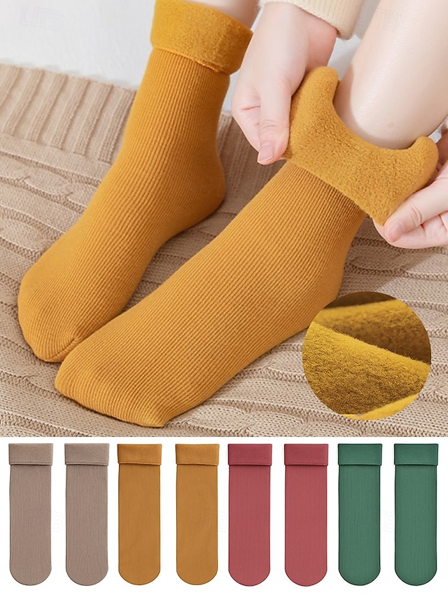 Женские утолщенные термоноски - комплект из 4 пар, мягкие и теплые, идеально подходят для зимы, холодной погоды и в качестве подарка на праздники#13003991