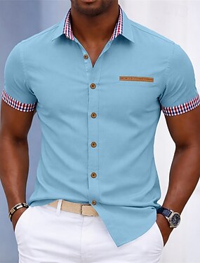 Муж. Рубашка Кнопка рубашка Контрастных цветов Повседневные Бизнес Светло-синий Черный Белый Серый С короткими рукавами Отложной Лето Одежда Пэчворк