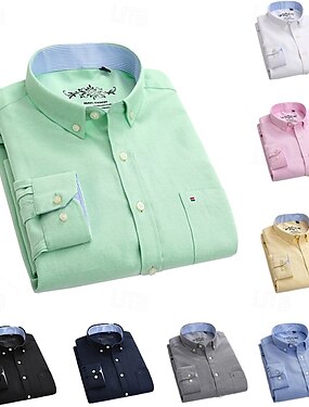 Муж. Рубашка Атласная рубашка Кнопка рубашка Выпускная рубашка Сплошной цвет Бизнес Свадьба Светло-синий Черный Белый Светло-зеленый Длинный рукав Отложной Все сезоны Одежда