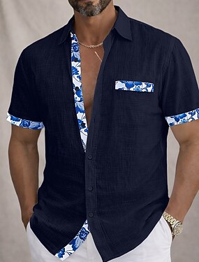 Муж. Цветочный принт Тропические цветы Гавайская рубашка Рубашка Алоха С короткими рукавами Рубашка Отпуск Гавайский на открытом воздухе Отпуск Гавайский Темно-синий Синий S M L
