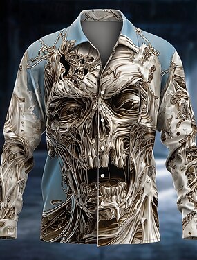Муж. Скелет Холодное сердце Ледяной череп Рубашка Кнопка рубашка Длинный рукав Темный готический стиль Праздники Уличная одежда Весна Осень Отложной 3D печать рубашки с воротником Синий 1# Синий