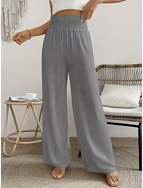 Жен. Искусственный хлопок и лен Широкие Чино Летние штаны Отпуск Мода Уличный стиль Полная длина Завышенная Полотняное плетение Эластичный пояс удобный Мягкий Удобный Эластичная